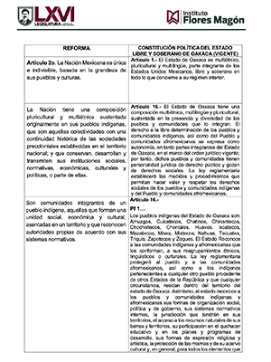Cuadro comparativo de la Reforma del artículo segundo Constitucional Federal