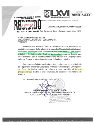 Correo Electrónico: institutofm@congresooaxaca.gob.mx